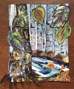 The second day you will return with your artwork, ready for more details to be added. Further collage details, stenciling (the instructor has plenty for class use), painted details and stitching will be considered. Finishing methods will be discussed - mounting on canvas, stretch bars, framing etc. The finished products are a little too delicate to consider binding without hard support.